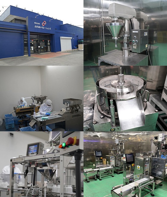 サプリメントの充填から包装加工まで行います。 錠剤(打錠、カプセル)の製造からボトル充填、パウチへの充填、個包装への充填が可能です。 また、粉末に関しても、製造からボトル充填、パウチへの充填が可能です。 ふれあいリレーションズでは、小ロットから大量発注まで短納期の納品を実現します。 発送代行も行うことが可能です。 GMP適合認定(製品GMP) 原料の受け入れから最終製品の出荷に至るまでの全工程において、「適正な製造管理と品質管理」を行っています。 プライバシーマーク 日本産業規格「JIS Q 15001 個人情報保護マネジメントシステムー要求事項」に基づき、個人情報を適切に取り扱っています。 HACCPの内容をふまえた衛生管理実施施設の認定 HACCPの考え方を導入することによって、衛生管理を見える化し、より効果的な衛生管理を実施しています。 食品営業許可 健康食品製造 添加物製造業 清涼飲料水製造業 油脂製造業 会社案内ダウンロード