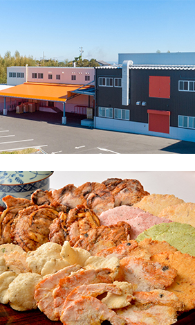 カネヨシ製菓では馬鈴薯澱粉をベースとして海老やイカなどの海産物で生地をつくり、その旨味を活かしてお煎餅を製造しています。この生地にご希望される素材や味付けなどを練り込んでオリジナルせんべいをご提案いたします。またパリッとさせる食感を出すために焼成後に軽くフライ加工を施し、乾燥して完成です。 海鮮素材に限らず、肉や野菜などご希望の素材も是非ご相談下さい。