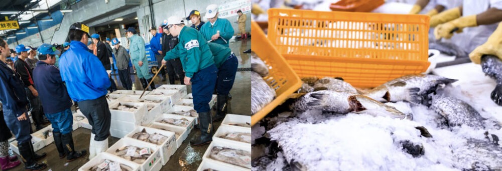 各地の漁師との信頼関係を活かして、早朝に水揚げされたばかりの魚介類をすぐに仕入れ、その鮮度を保ちながら加工や配送を行います。